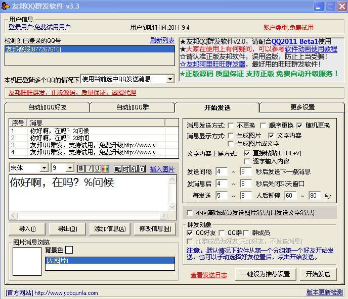 友邦QQ群发用前必读说明:点击下载