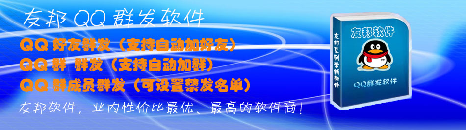 友邦QQ群发软件由友邦工作室开发研制,是一款针对QQ群发的软件。其软件功能强大,操作简单,人性化的设计理念,操作页面用户体验都非常的简洁,容易上手,完全的傻瓜式的操作模式,支持最新QQ2013进行群发,稳定性强,支持QQ好友,QQ群,QQ群成员,支持加好友群发,支持搜索QQ好友功能,支持文字,图片,表情,链接内容发送。软件体积小,不占用电脑内存,CPU,友邦软件力争行业性价比最优秀的软件商...友邦QQ群发用前必读说明:点击下载